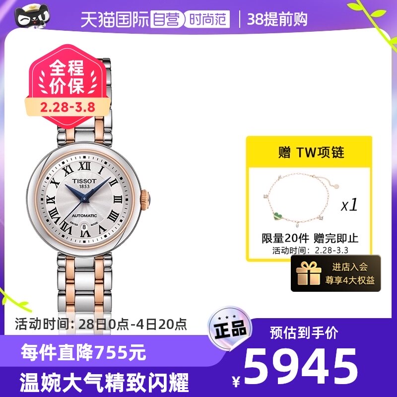 【自营】天梭TISSOT瑞士女表力洛克系列手表机械腕表机械表机芯