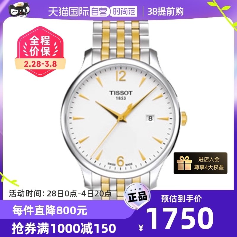 天梭男手表Tissot瑞士机械表经典梦幻双色钢带防水礼腕表11717367