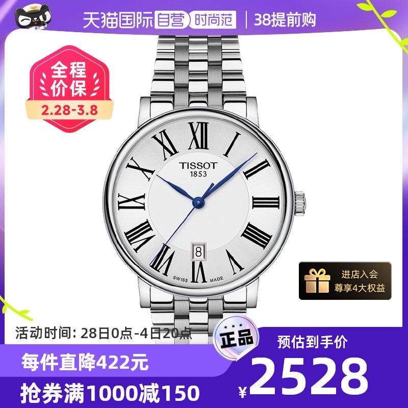 天梭男手表Tissot瑞士机械表自动卡森钢带水钻礼物T1224072203300