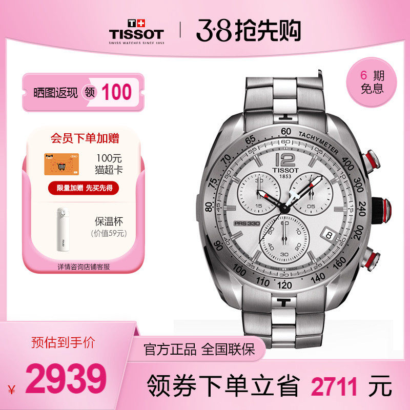 天梭男手表Tissot瑞士PR100石英不锈钢带39mm礼物腕表2334333