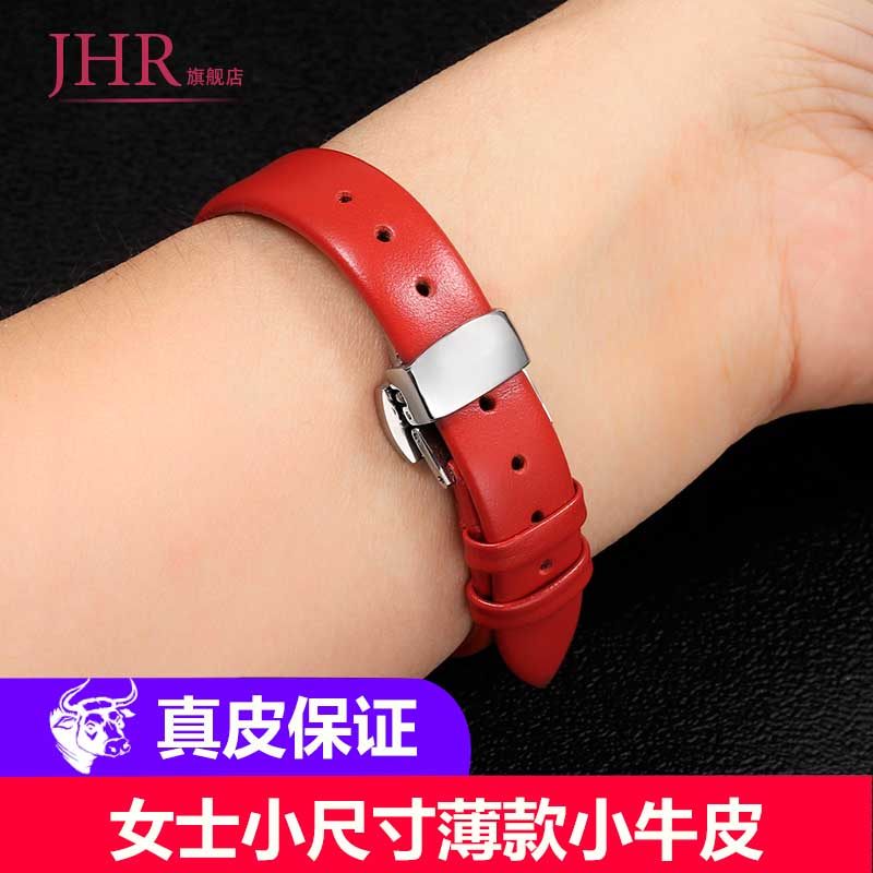 超薄红色手表带真皮女适配飞亚达dw阿玛尼天梭CK罗西尼卡西欧依波