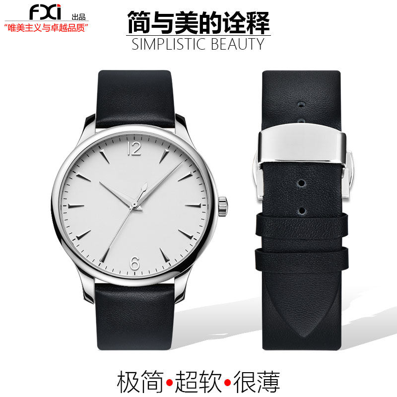 fxi表带 适用天梭浪琴美度西铁城精工DW天王阿玛尼罗西尼CK飞亚达化石手表带玛瑙黑色柔软超薄真皮手表带