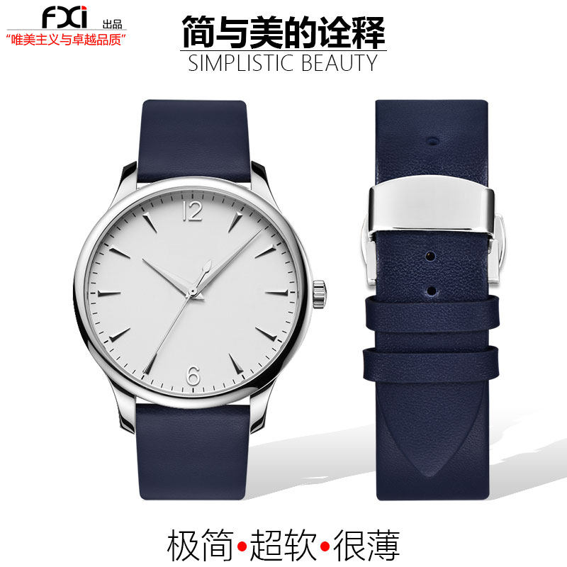 fxi表带 适用天梭浪琴美度西铁城精工DW天王阿玛尼罗西尼CK卡西欧化石手表带深蓝色柔软超薄真皮手表带女男