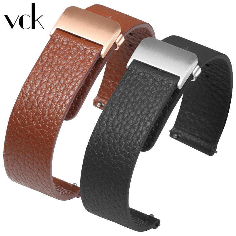 超薄柔软真皮手表带男女黑棕色折叠扣代用天梭浪琴欧米茄dw美度ck