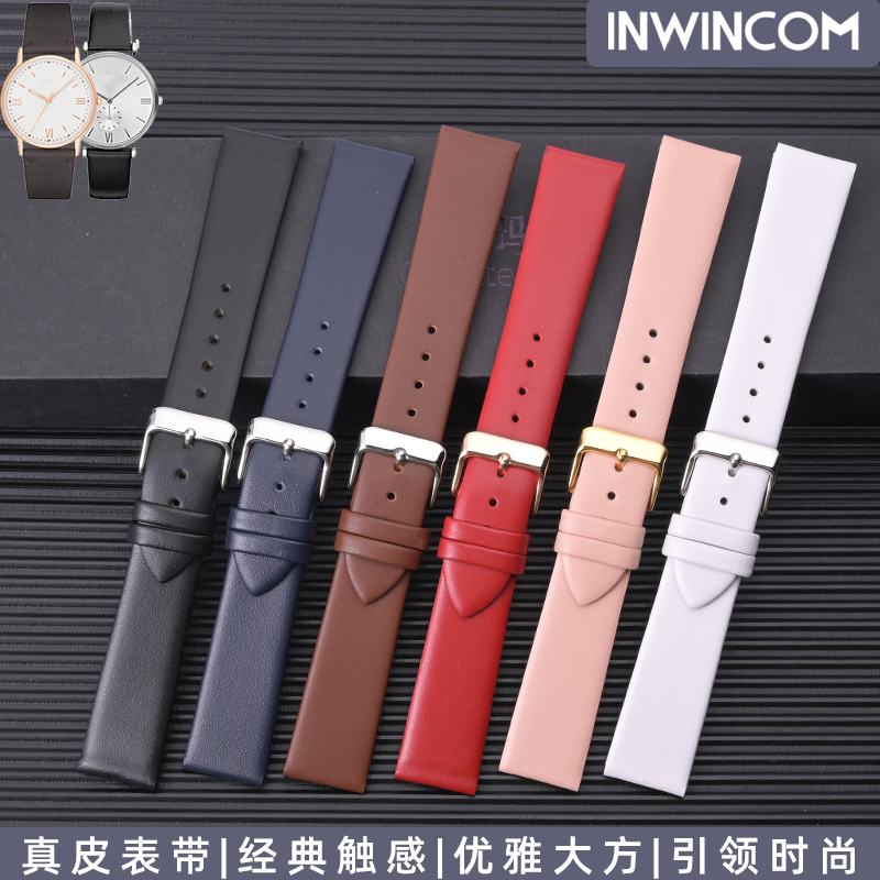 手表带真皮女款超薄牛皮表链适用dw天梭华为浪琴美度满天星阿玛尼