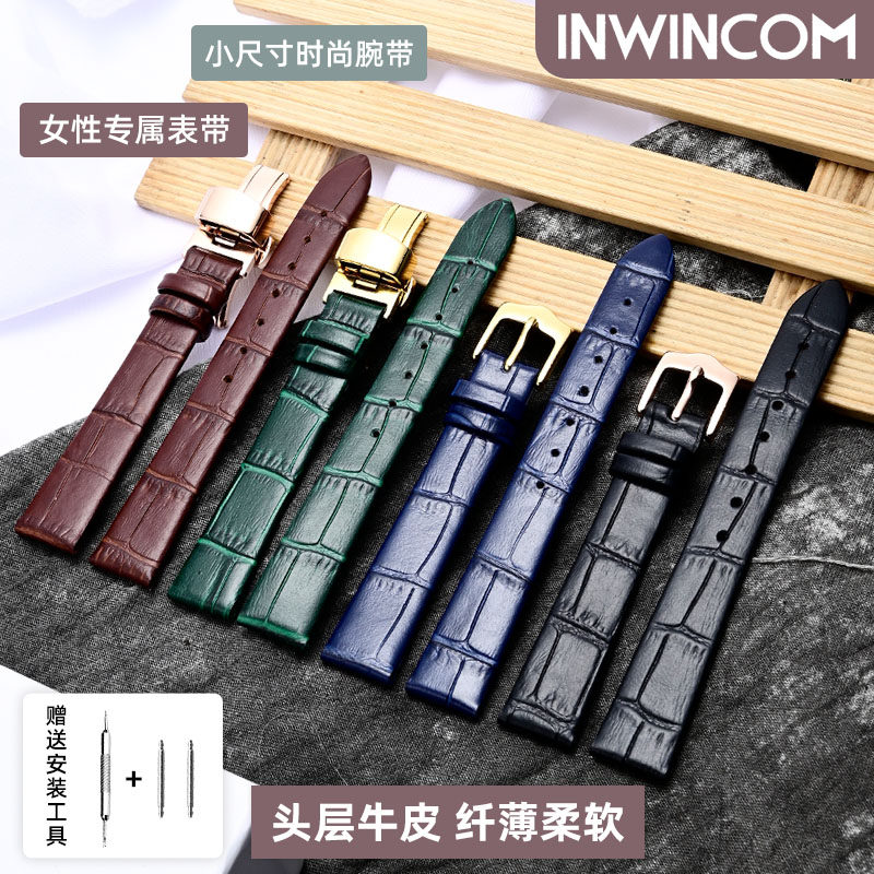 小尺寸超薄柔软牛皮手表带真皮女表链适配罗拉DW天梭罗西尼卡西欧