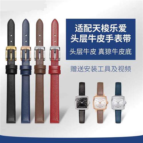 超薄真皮表带女士适配天梭乐爱系列T058109A手表带小尺寸表链 9mm