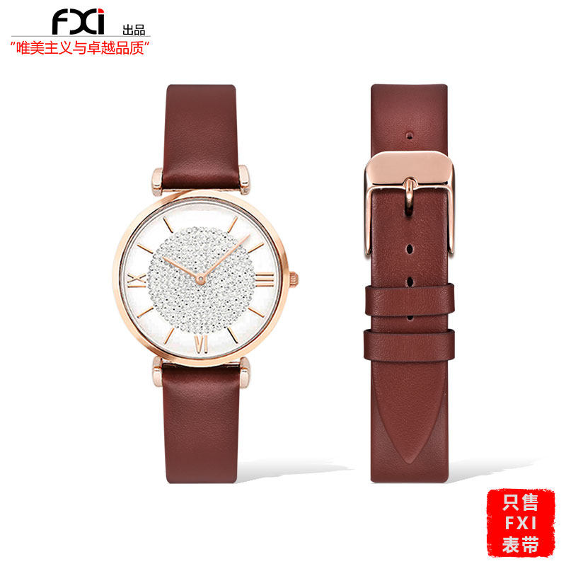 fxi表带 适用天梭浪琴美度西铁城精工DW天王阿玛尼罗西尼CK卡西欧化石梅花手表带柔软超薄真皮表带女男针扣