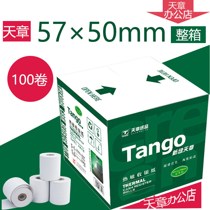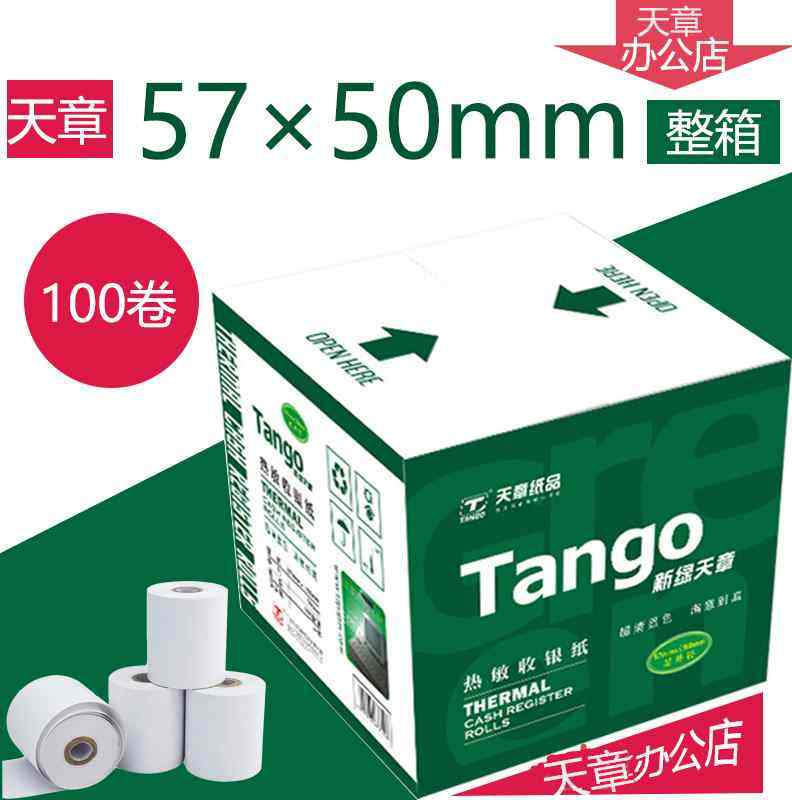 新绿天章收银纸57*50热敏纸58mm打印纸超市外卖小票纸 100卷 包邮
