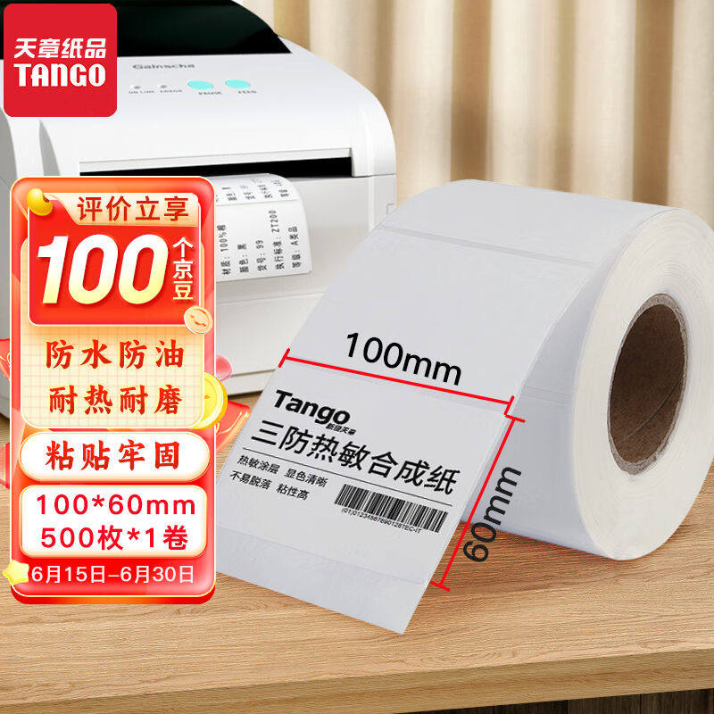 【天章/TANGO】三防热敏标签纸60*40 20 30 50 70 80 90 100不干胶贴纸条码纸E邮宝快递超市价格称纸防水彩色