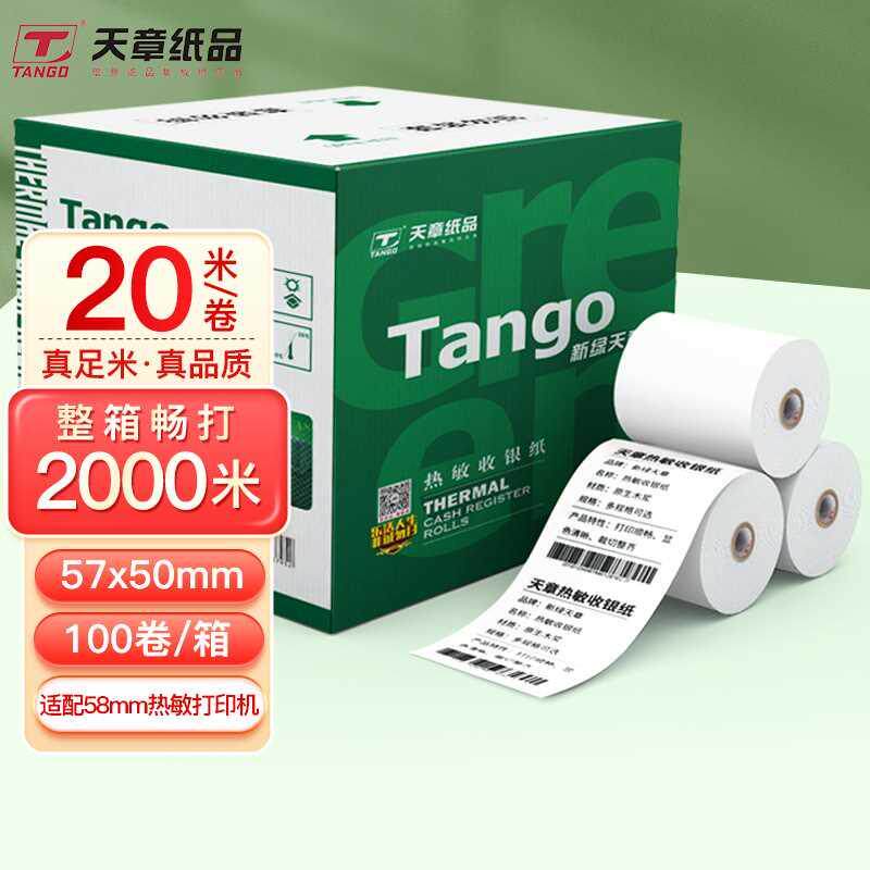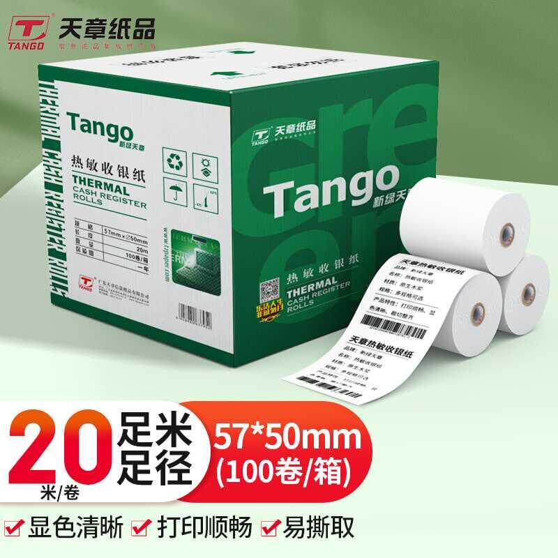 新绿天章热敏收银纸57*50mm美团外卖超市小票纸 30卷50卷100卷(20