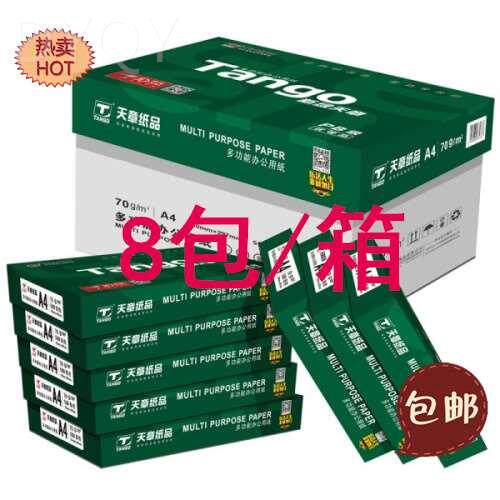 包邮天章a4纸打印复印纸70g80g木浆办公用纸a4白纸草稿纸 8包一箱