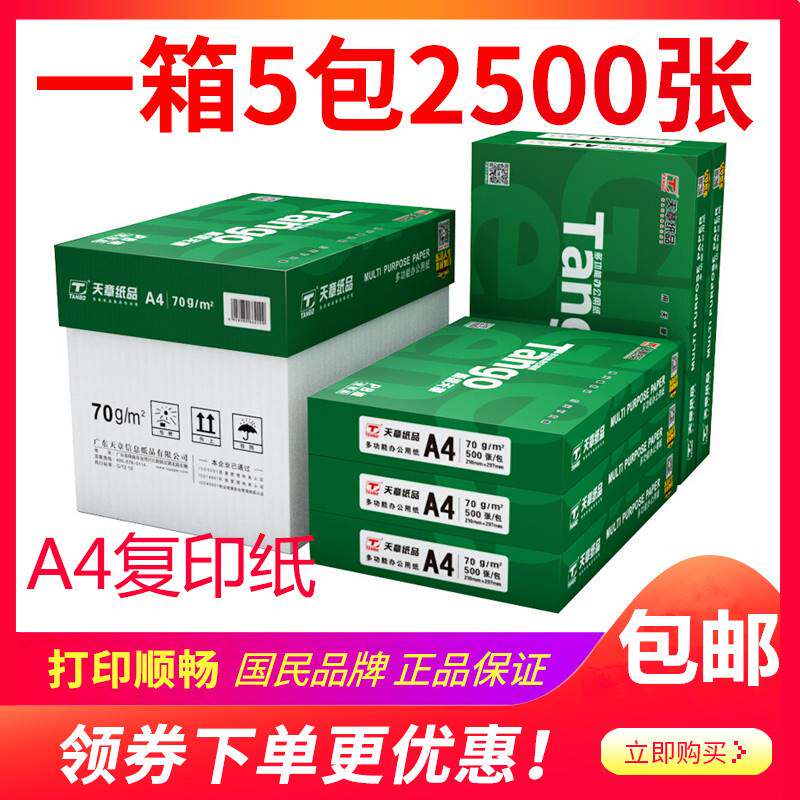 天章复印纸打印a4纸70克A4白纸80g办公用纸2500张整箱包邮