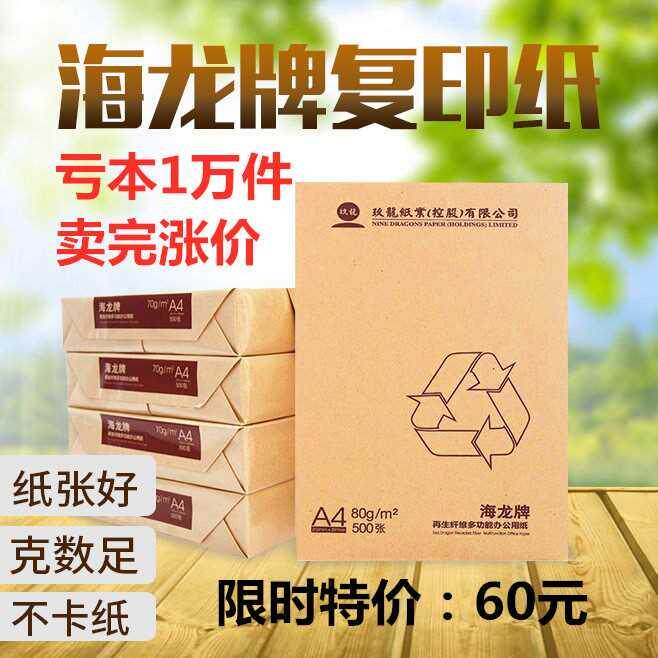海龙a4复印纸70克80g 500张包 5包箱 a4纸打印白纸办公纸天章韵