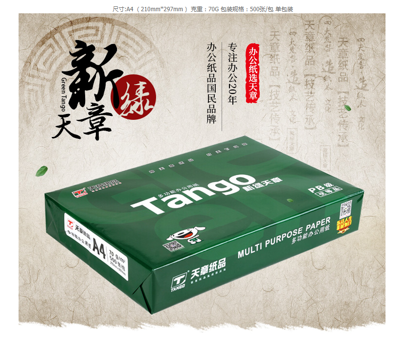 天章(TANGO)新绿天章A4纸70g双面A4打印纸热销款复印纸企业购渠道