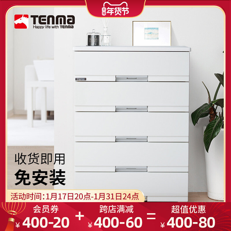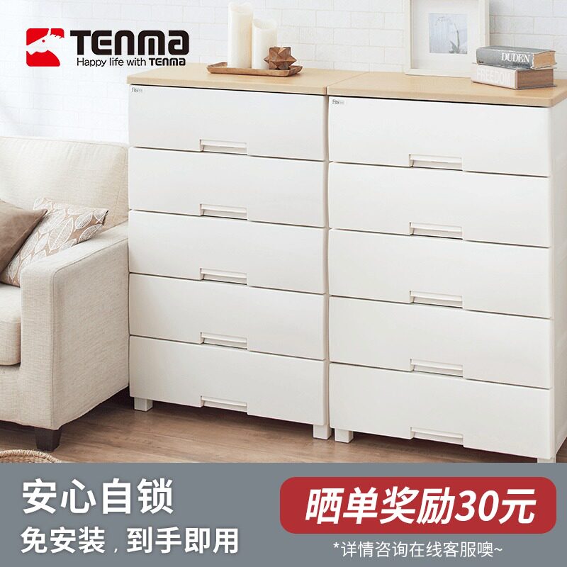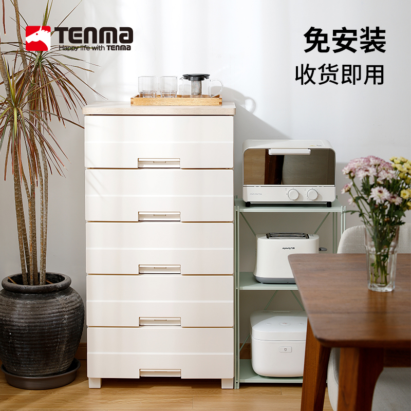 Tenma天马株式会社抽屉收纳柜木质顶板多层整理柜家用客厅五斗柜