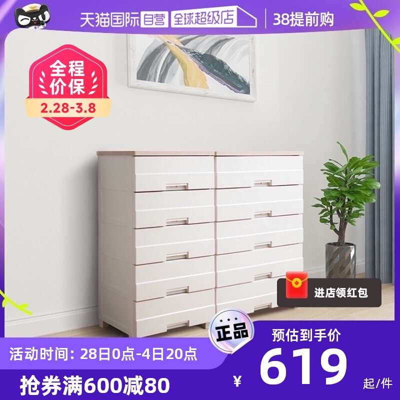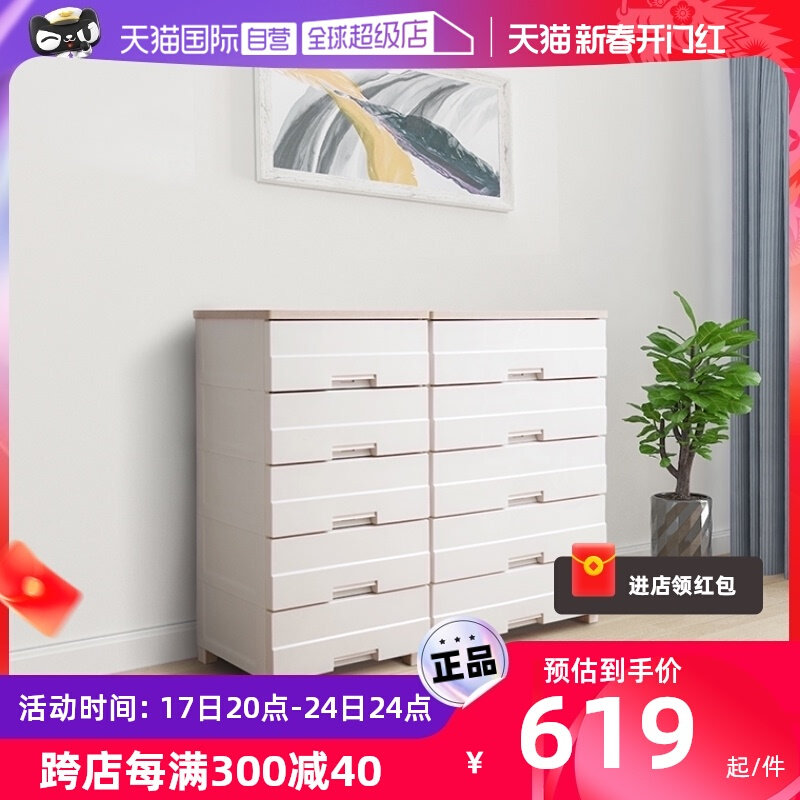 日本天马带锁储物柜子收纳柜塑料卧室衣柜五斗柜置物柜抽屉柜多层