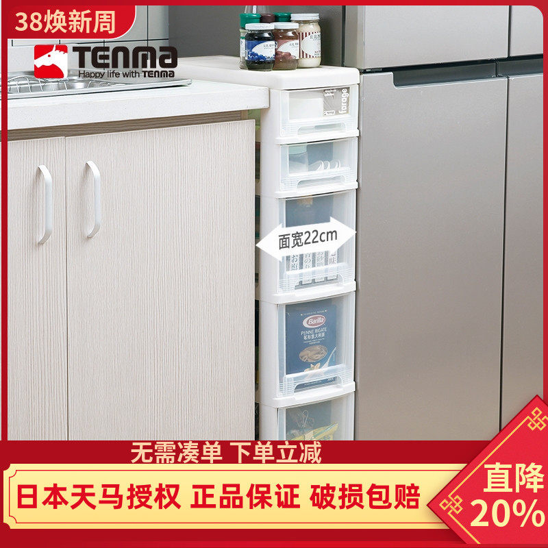 日本Tenma天马夹缝收纳柜可移动抽屉式缝隙窄柜厨房卫生间储物柜