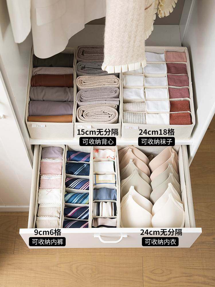 天马布艺内衣裤收纳盒抽屉多格收纳盒袜子分隔衣柜毛巾衣物储物盒