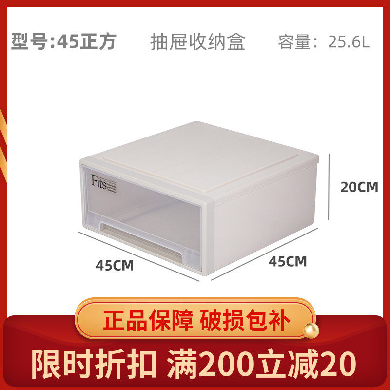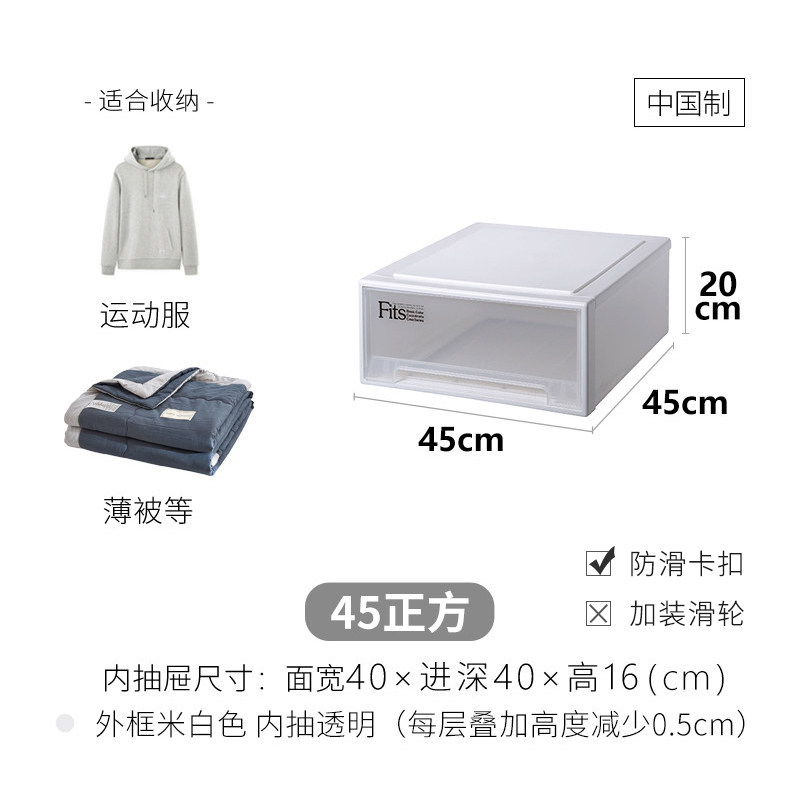 天马株式会社45正方抽屉式收纳箱塑料整理箱衣柜储物透明收纳盒