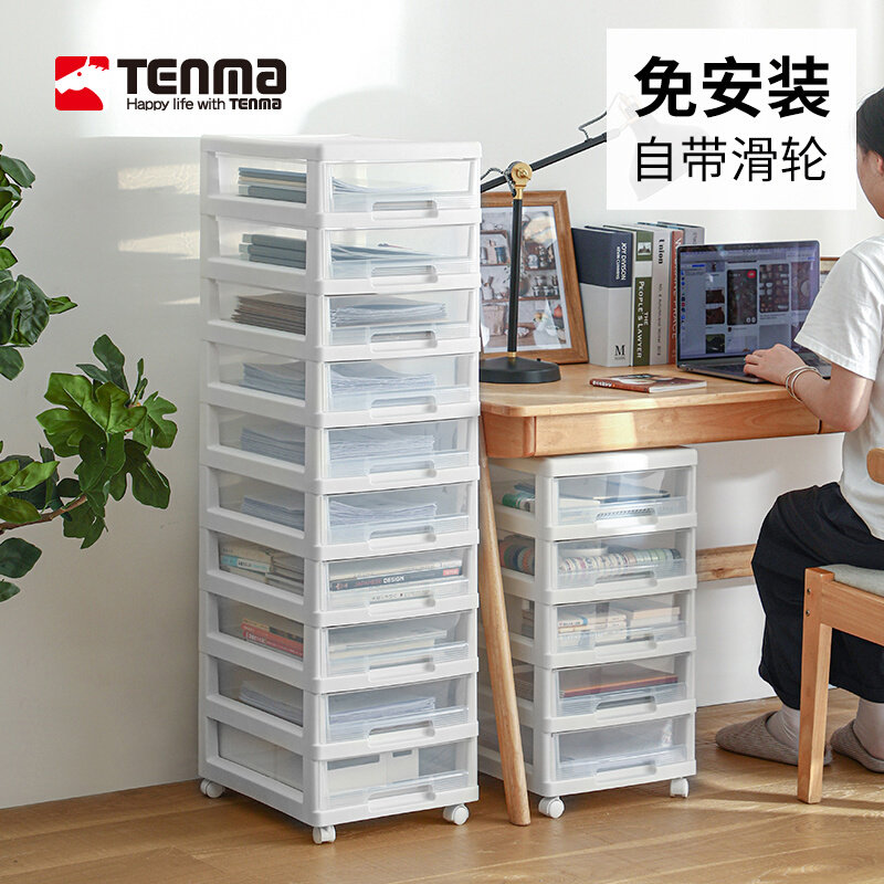 日本Tenma天马移动式抽屉柜三层塑料办公室抽屉式收纳柜四层储物