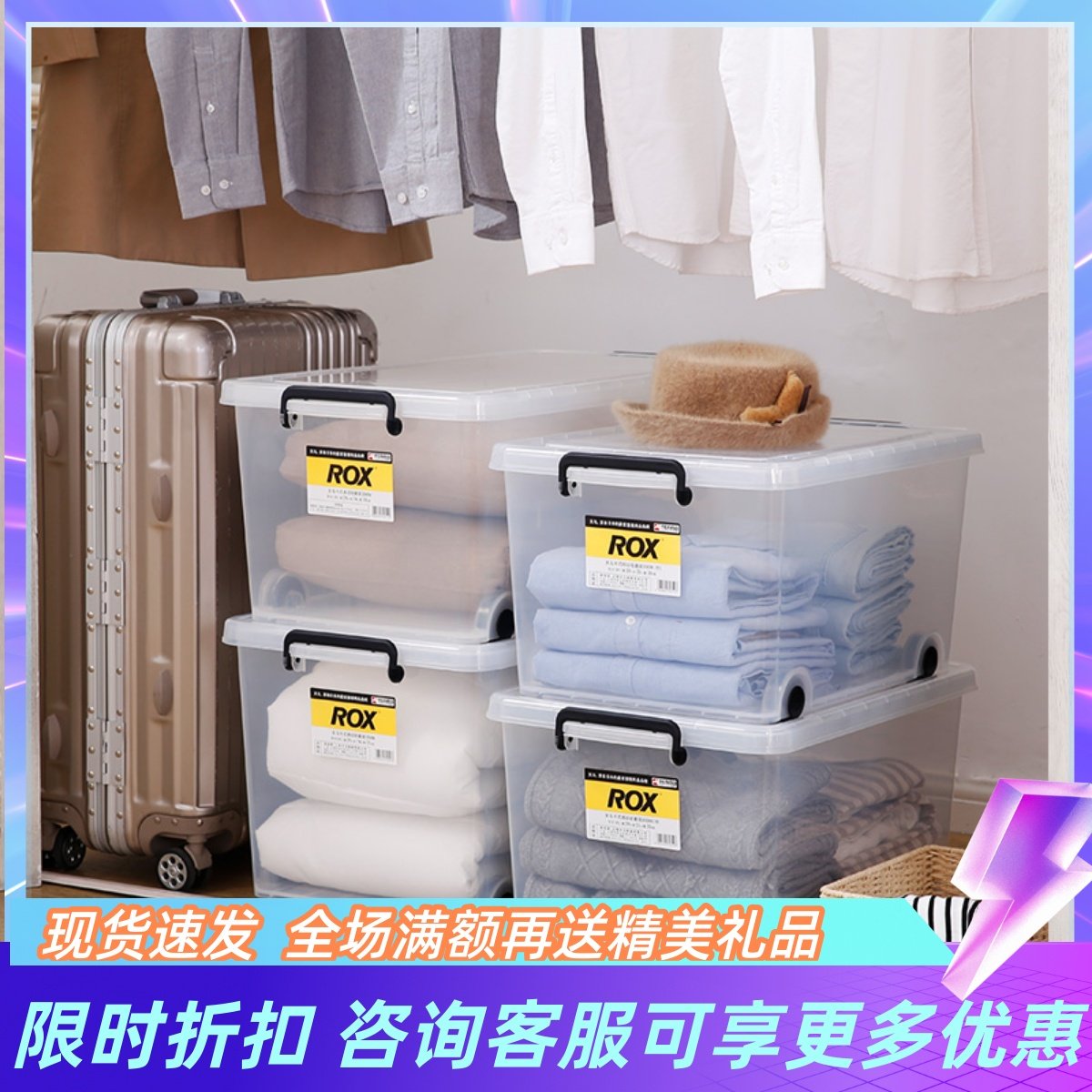 日本天马ROX系列收纳箱家用超大衣服整理箱透明塑料大容量周转箱