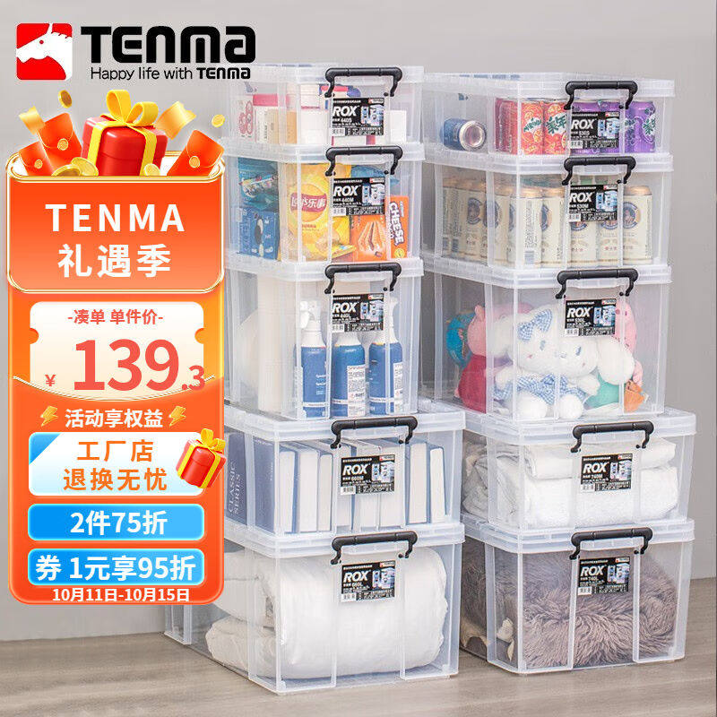 适用天马tenma多用途透明塑料收纳箱衣服整理储物箱车载周转箱带