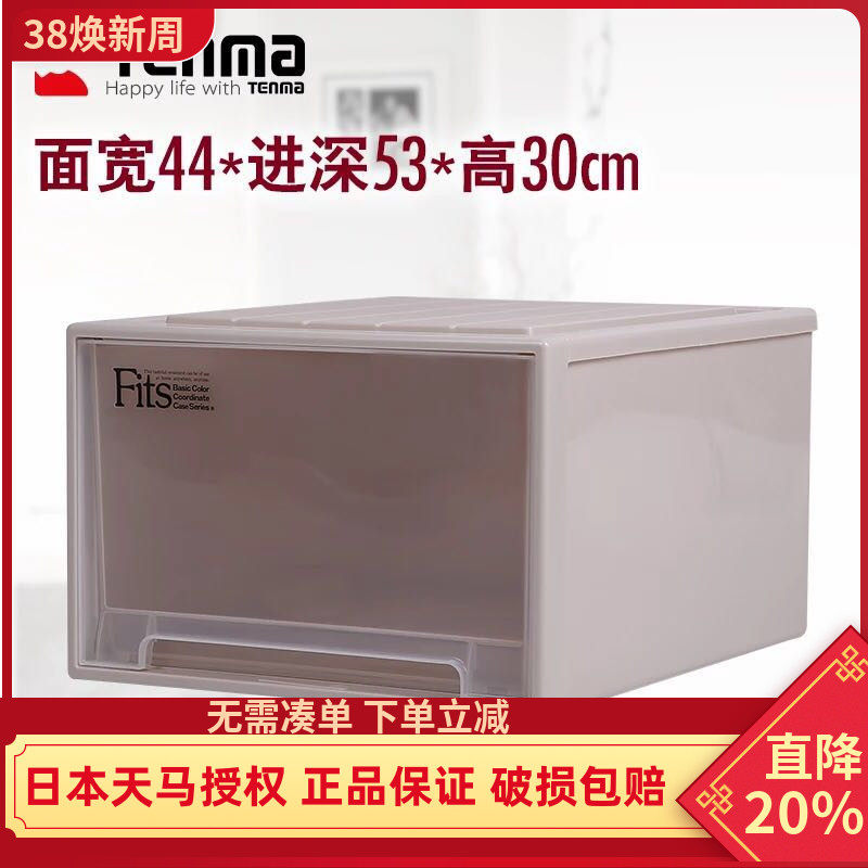 日本天马株式会社抽屉收纳箱ins塑料收纳盒面宽39衣柜衣物整理箱