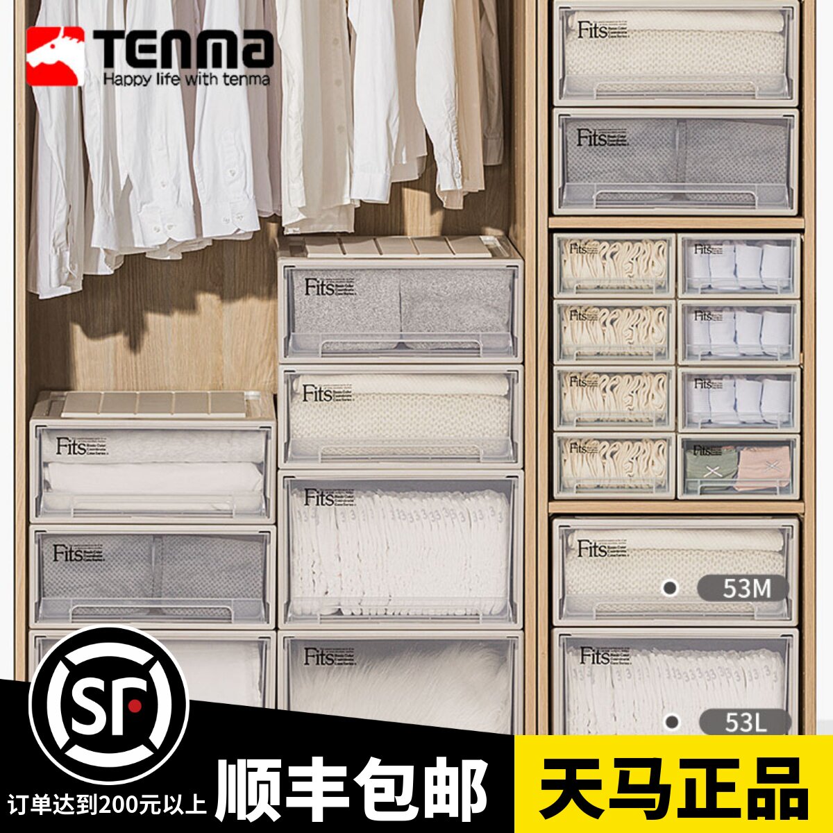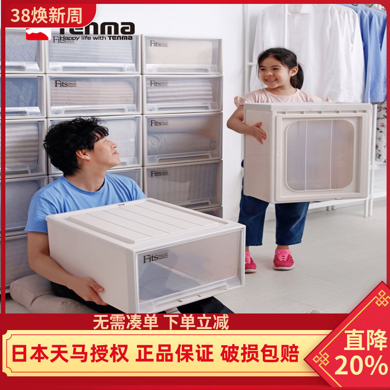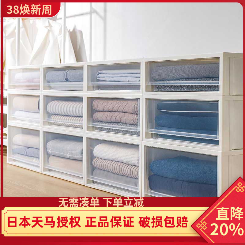 日本天马株式会社收纳箱塑料整理箱透明抽屉式收纳盒衣柜储物盒