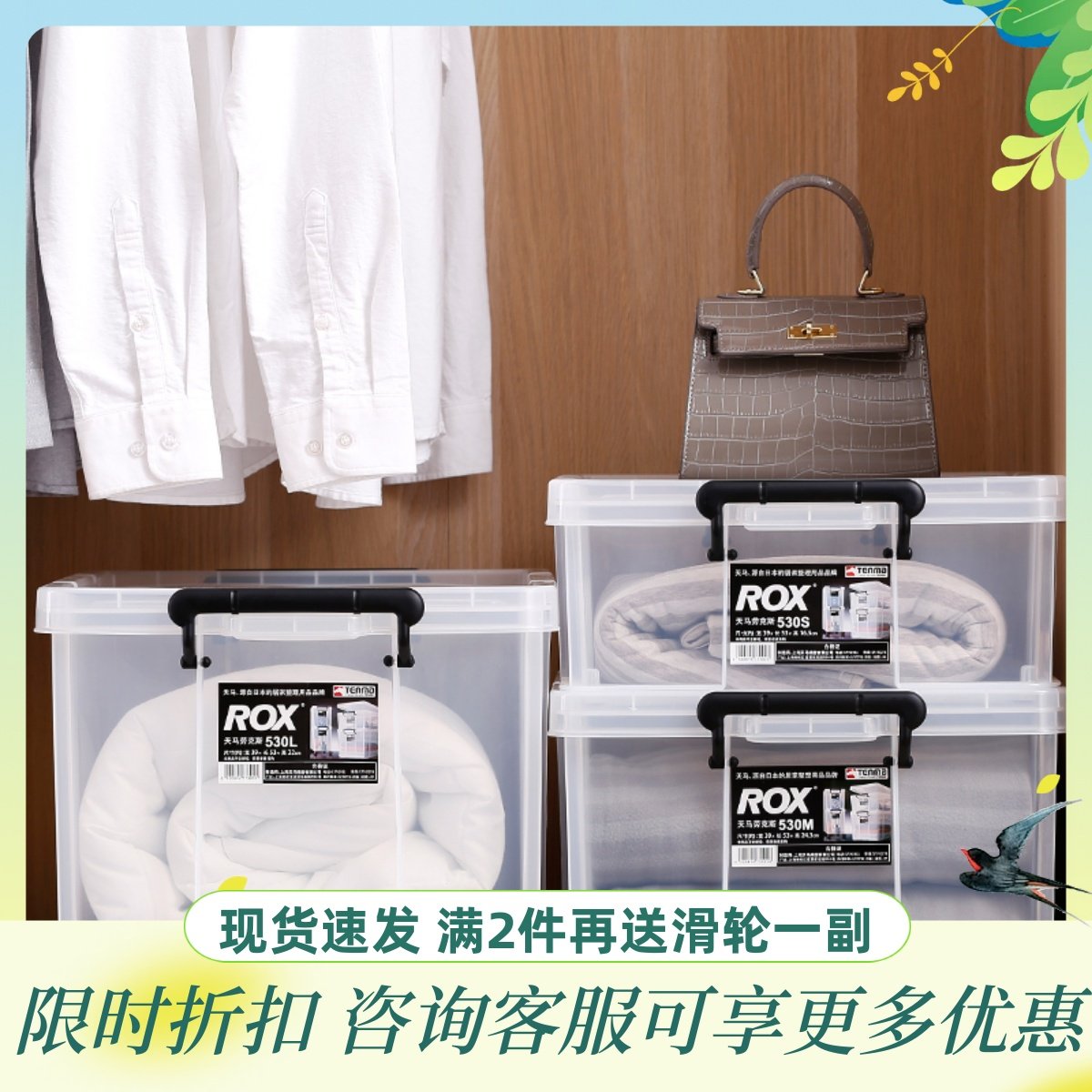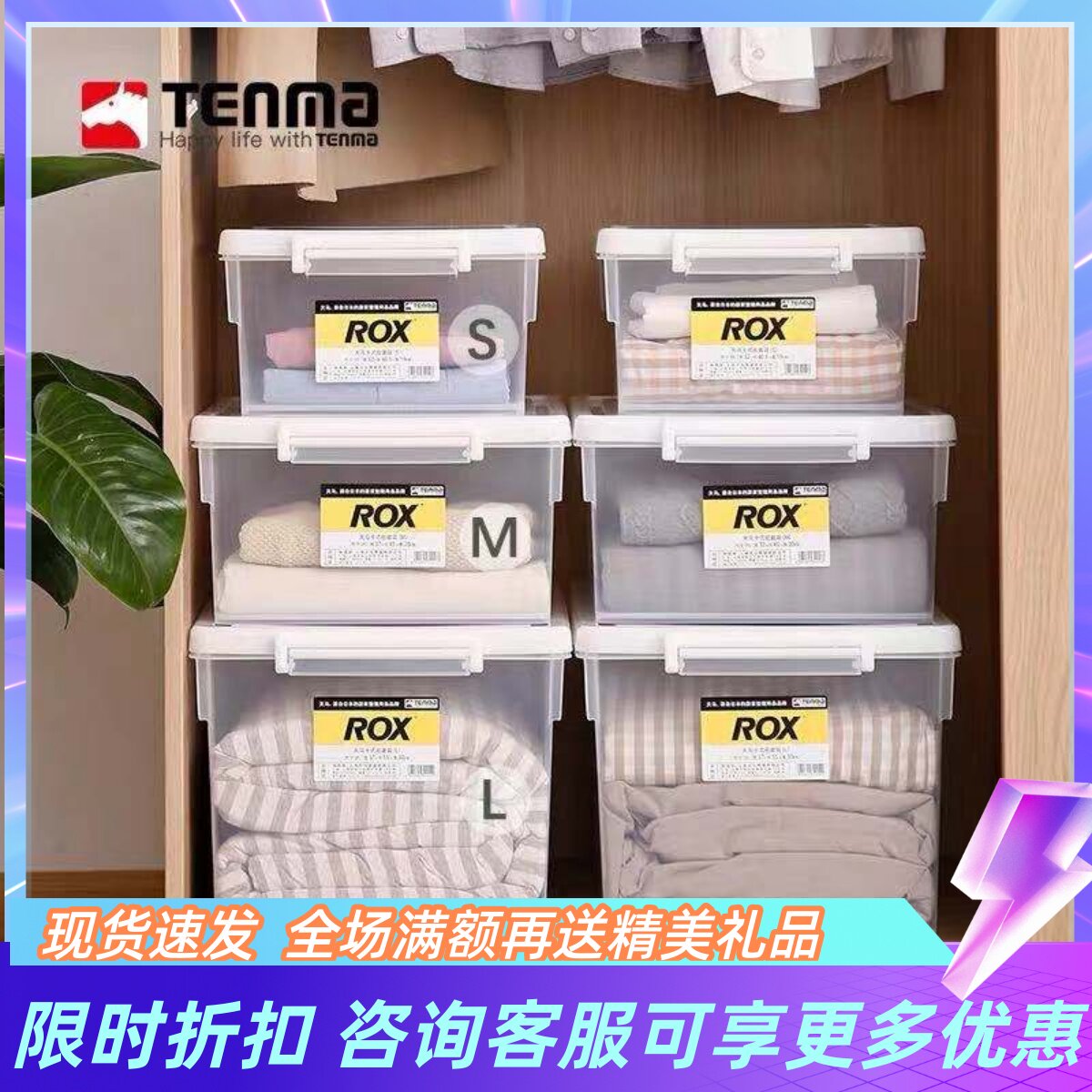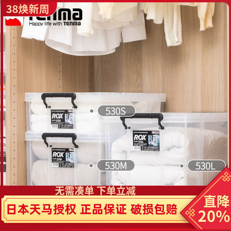 日本Tenma天马劳克斯塑料透明收纳箱衣物棉被整理箱特车载储物箱