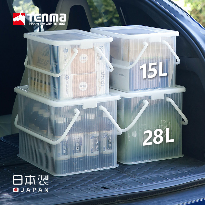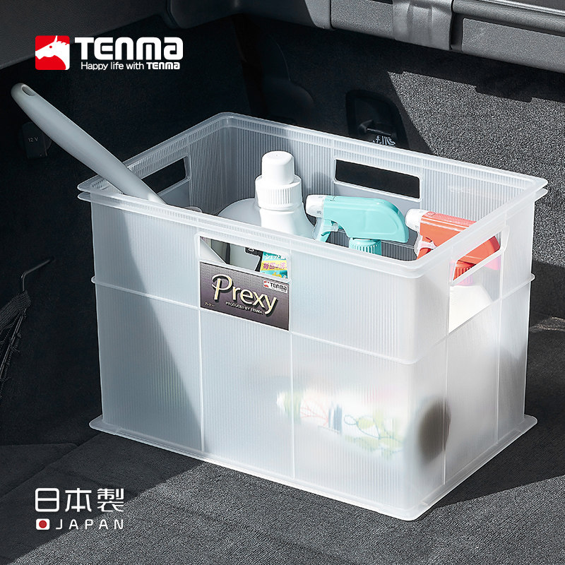 tenma天马户外手提篮车载收纳箱后备箱透明便携大号零食箱篮子