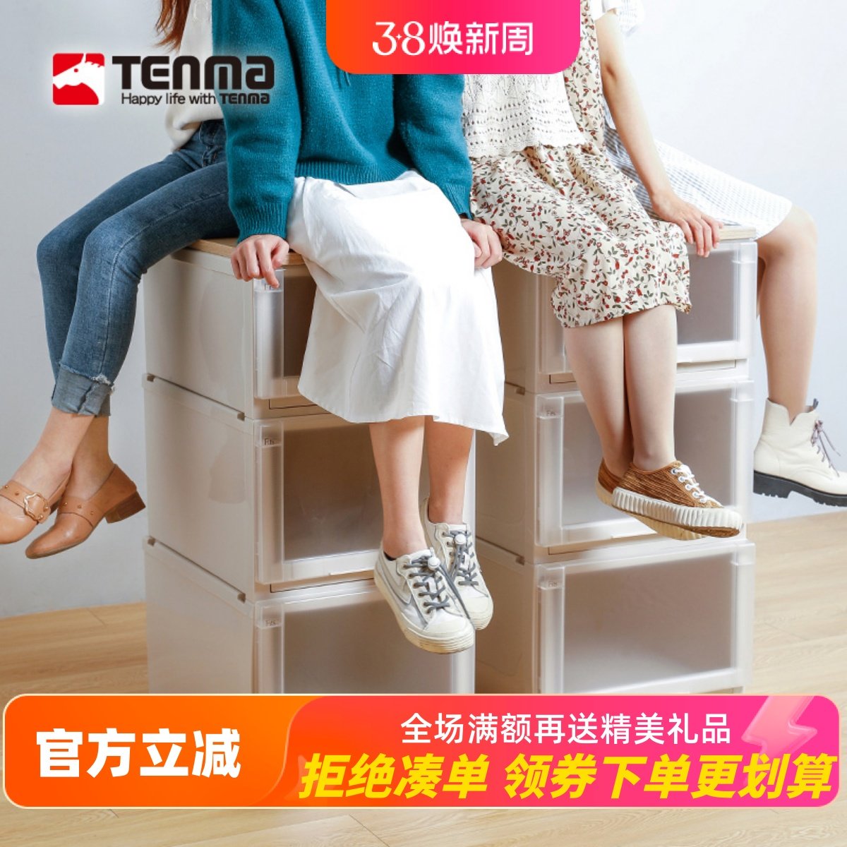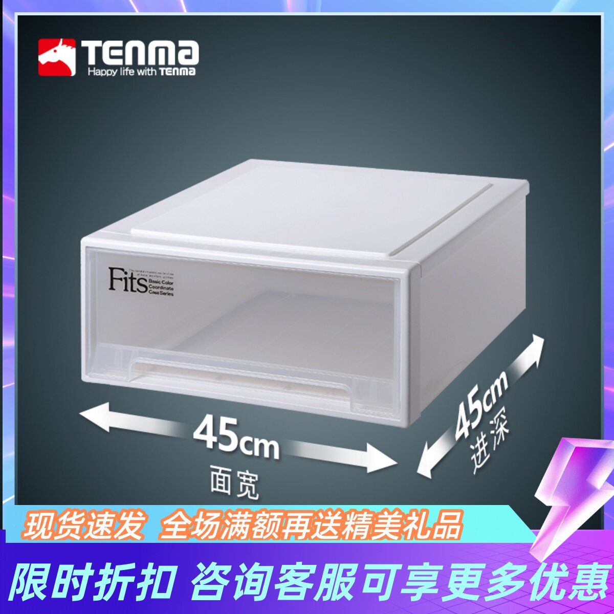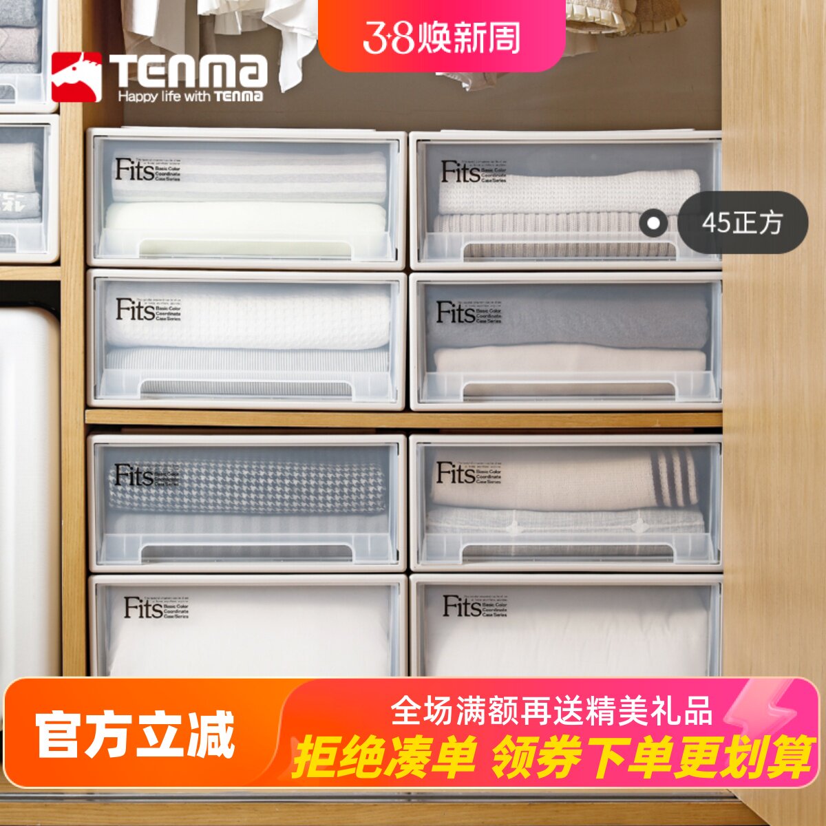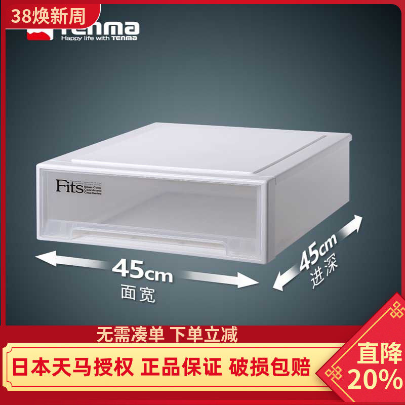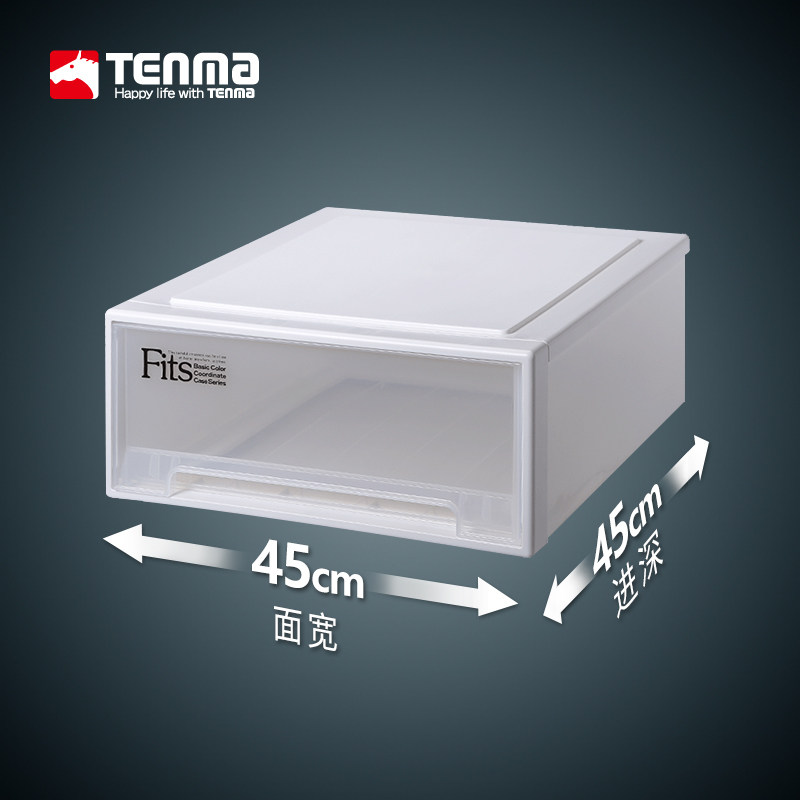 日本天马tenma收纳箱抽屉柜透明储物箱45正方收纳盒衣服物整理箱