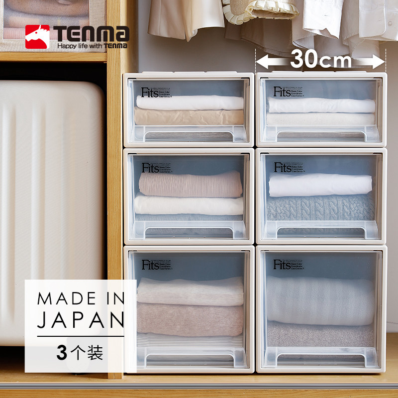tenma日本天马进口面宽30cm收纳箱塑料抽屉衣服玩具收纳盒3个装