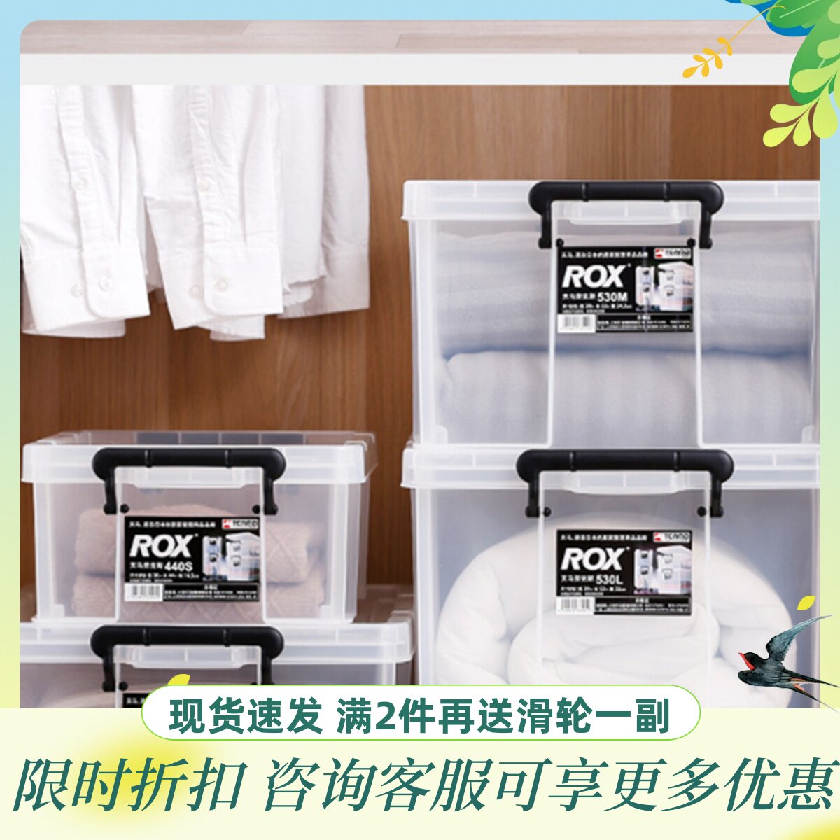 天马株式会社劳克斯整理箱透明有盖塑料收纳箱特大号加厚储物箱