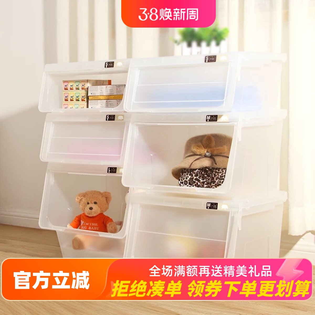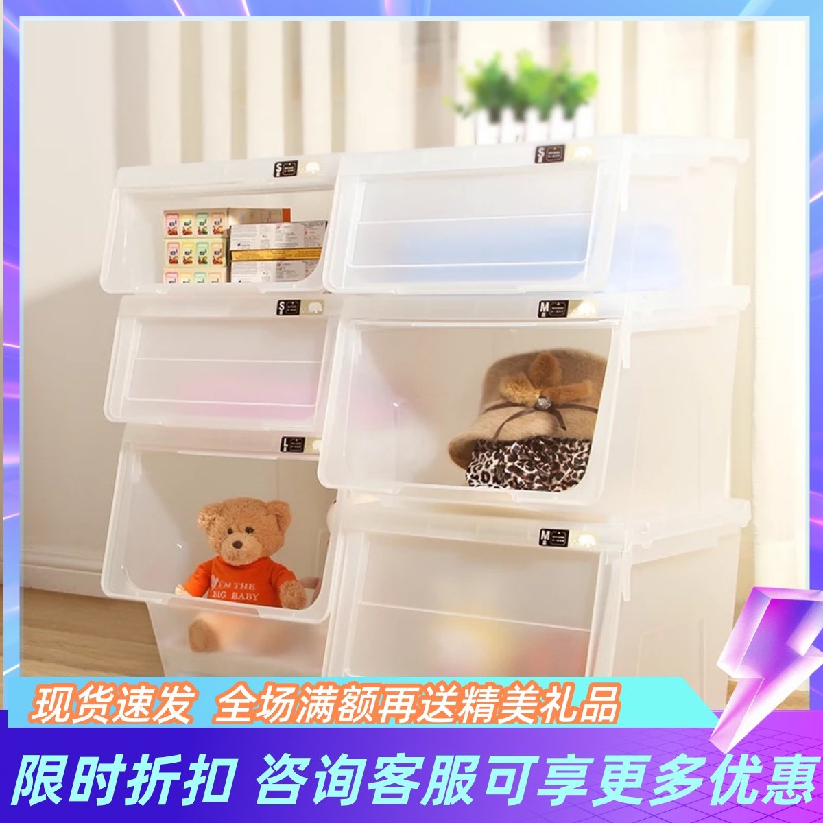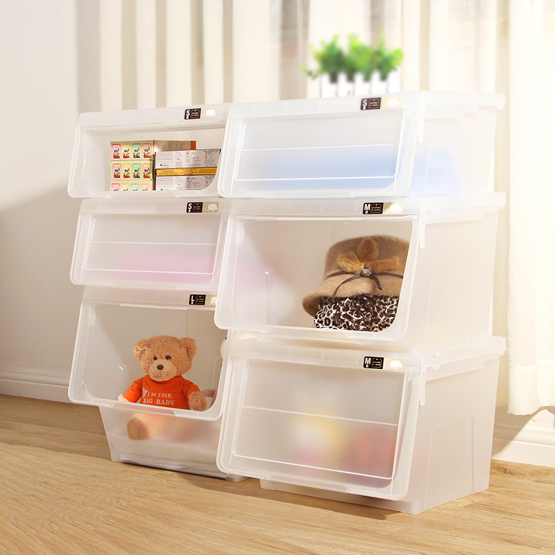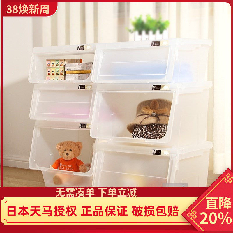 天马株式会社前开式收纳箱河马口整理箱透明玩偶玩具衣物收纳盒
