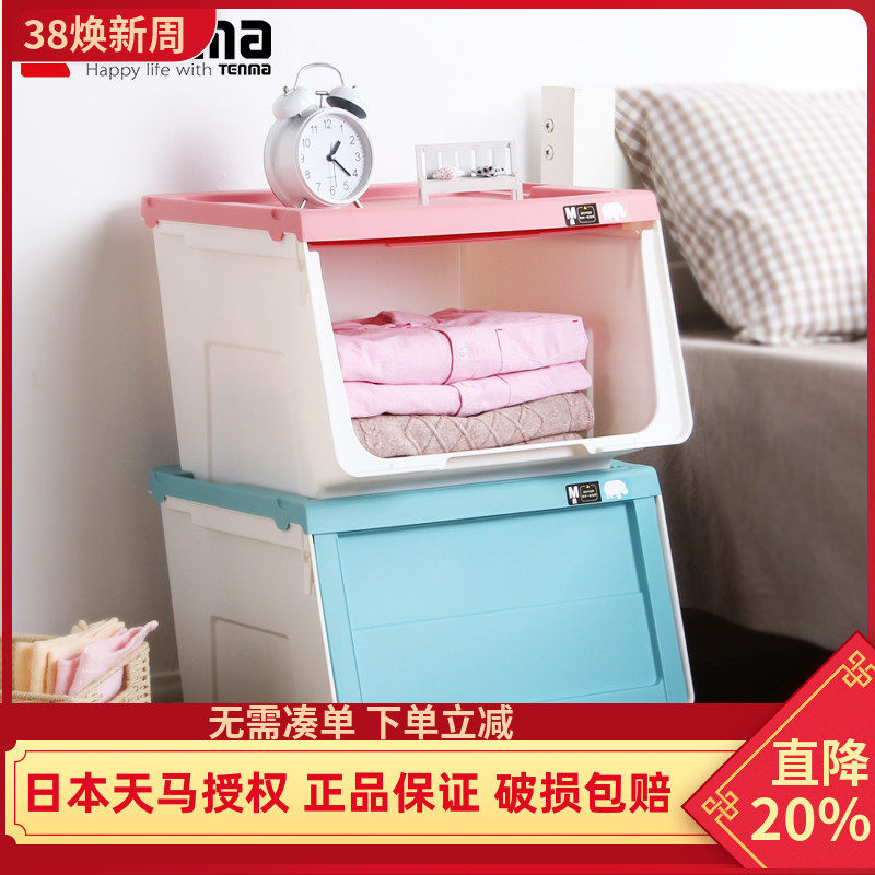 天马tenma前开式收纳箱翻盖式整理箱河马口衣物玩具收纳盒储物箱