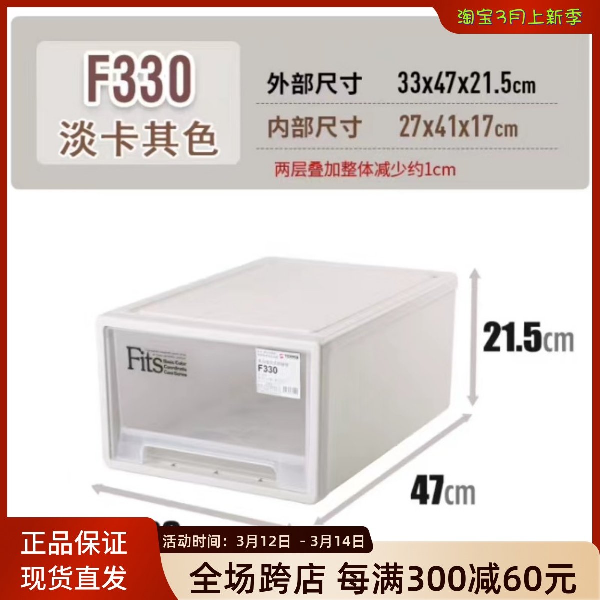 日本天马株式会社F330抽屉式收纳箱衣柜塑料整理箱衣服内衣收纳盒