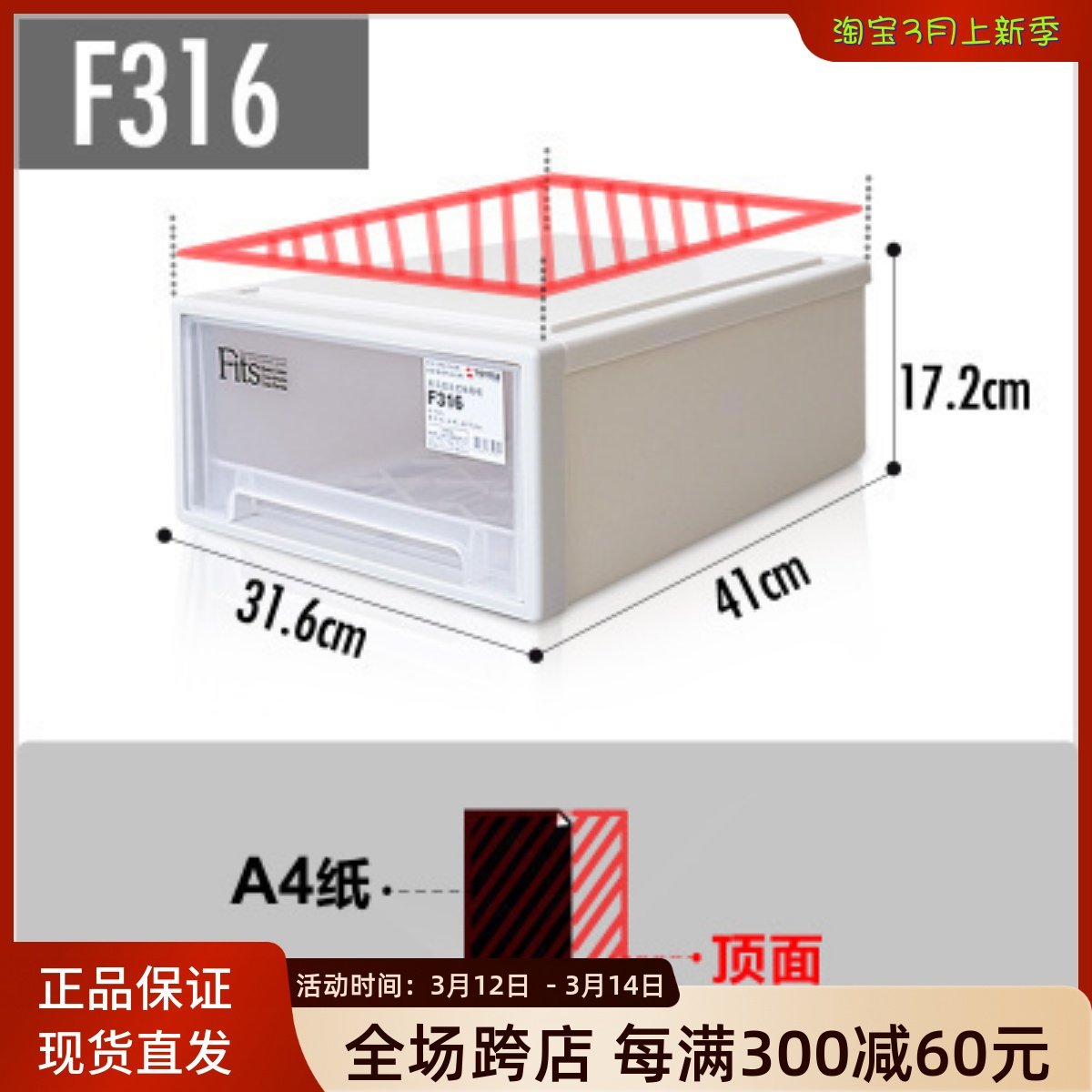 天马株式会社F330抽屉式收纳箱透明塑料整理箱储物盒抽屉式收纳盒