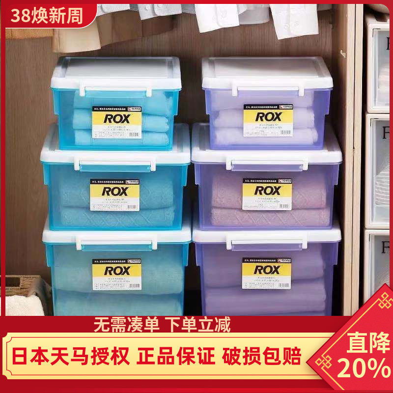 日本天马透明收纳箱收纳家用大号劳克斯整理箱塑料衣服储物箱车用