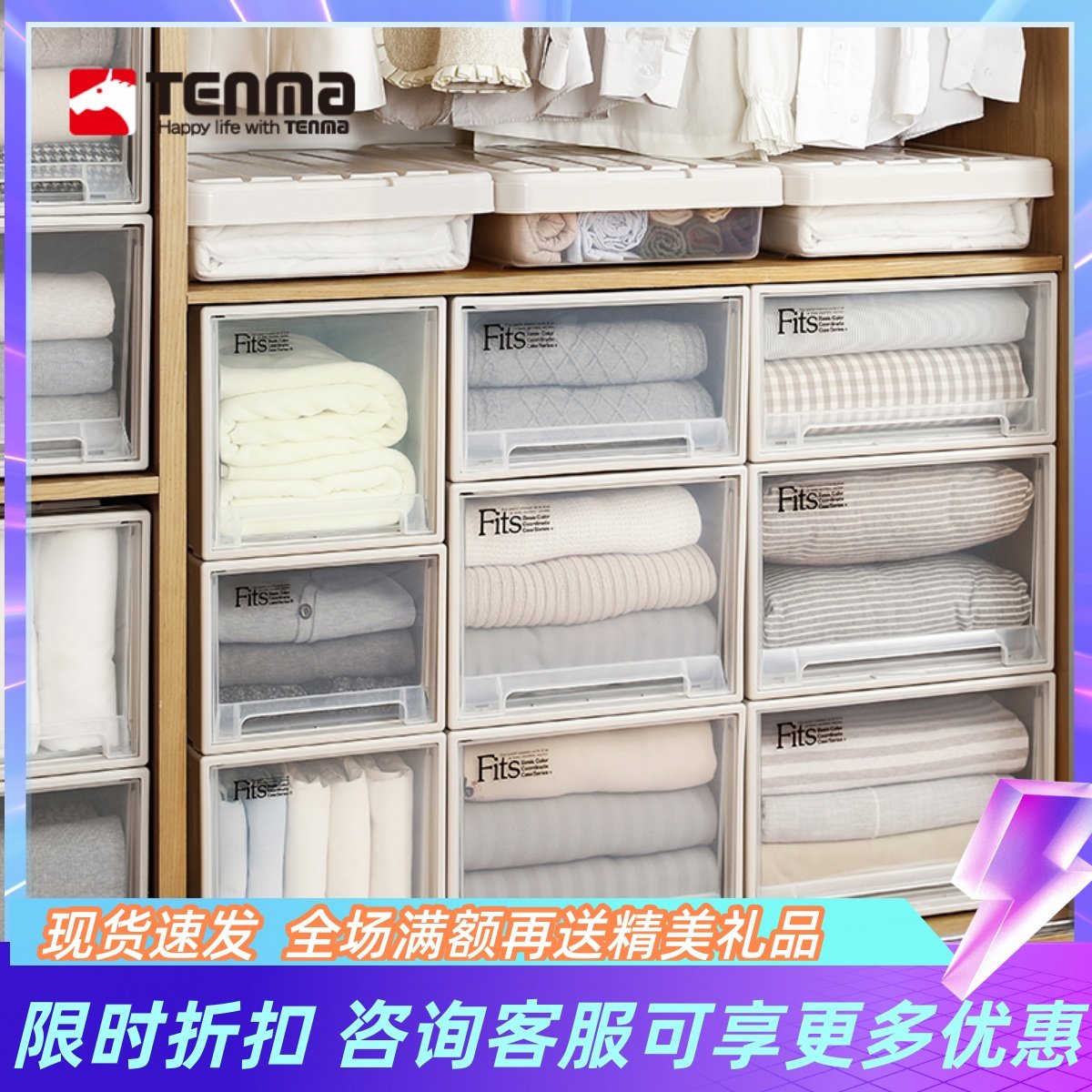 日本天马株式会社收纳箱ins玩具整理箱抽屉式家用衣柜衣服收纳盒