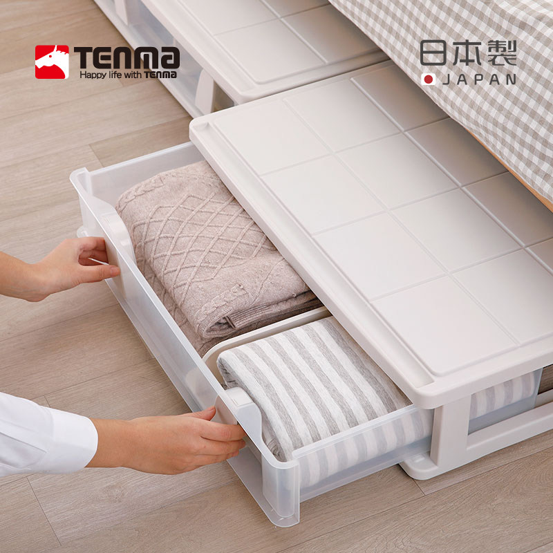 日本进口tenma天马床底收纳箱衣服抽拉整理箱塑料抽屉柜带轮储物