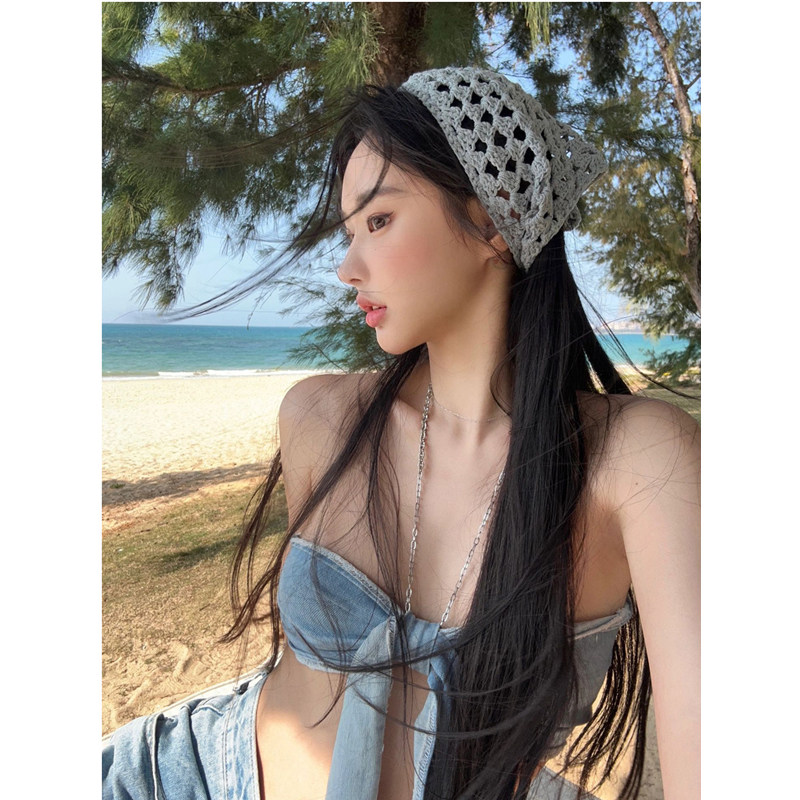 夏季新款流苏吊带背心女编织镂空挂脖露肩打底衫裹胸性感外穿上衣