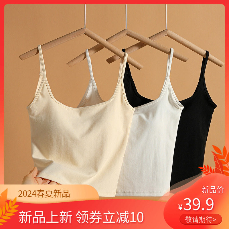 内茵吊带背心女带胸垫内搭一体式抹胸美背宽松打底凉感家居服上衣