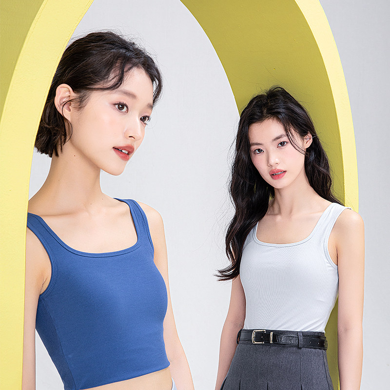 方领露锁骨背心女无袖带胸垫纯欲内搭短款辣妹性感抹胸打底女上衣