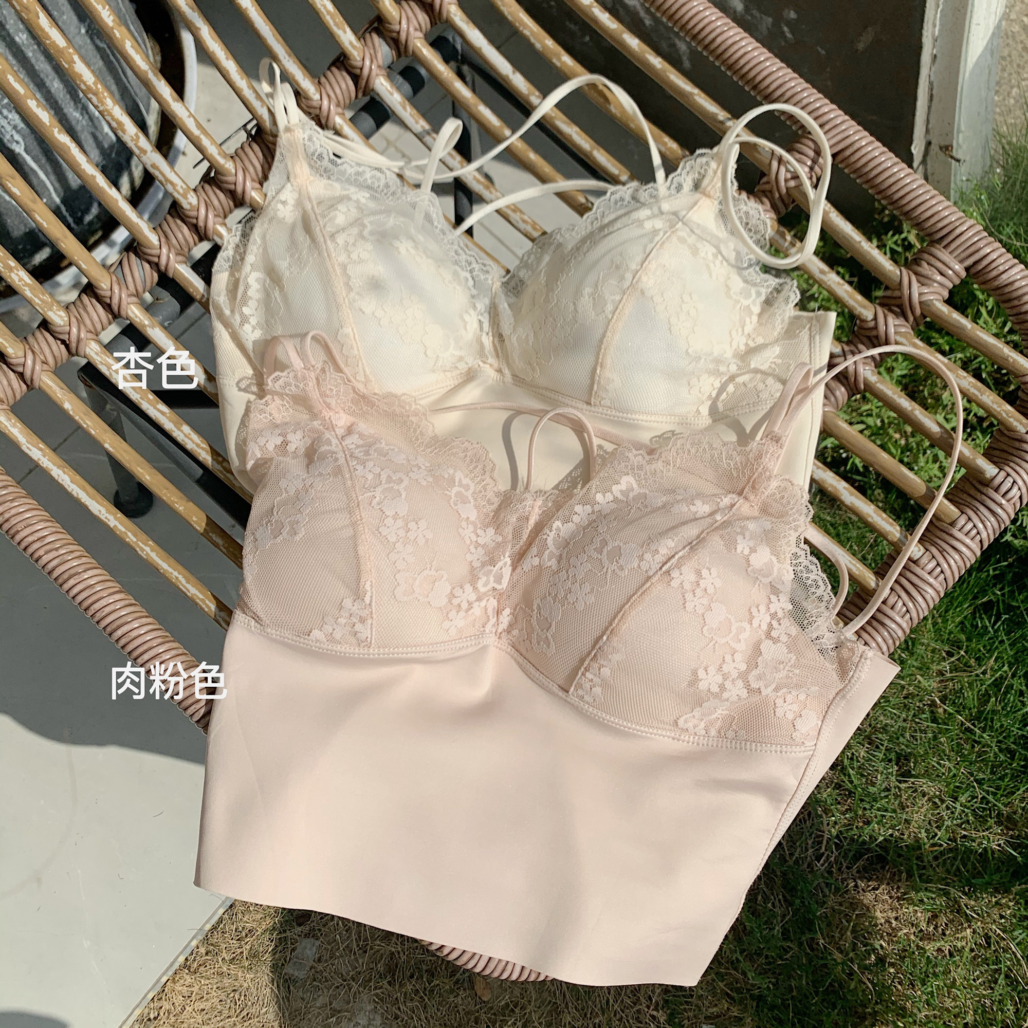 幽香汝吊带打底蕾丝裹胸内衣女士小胸显大聚拢带胸垫美背抹胸上衣