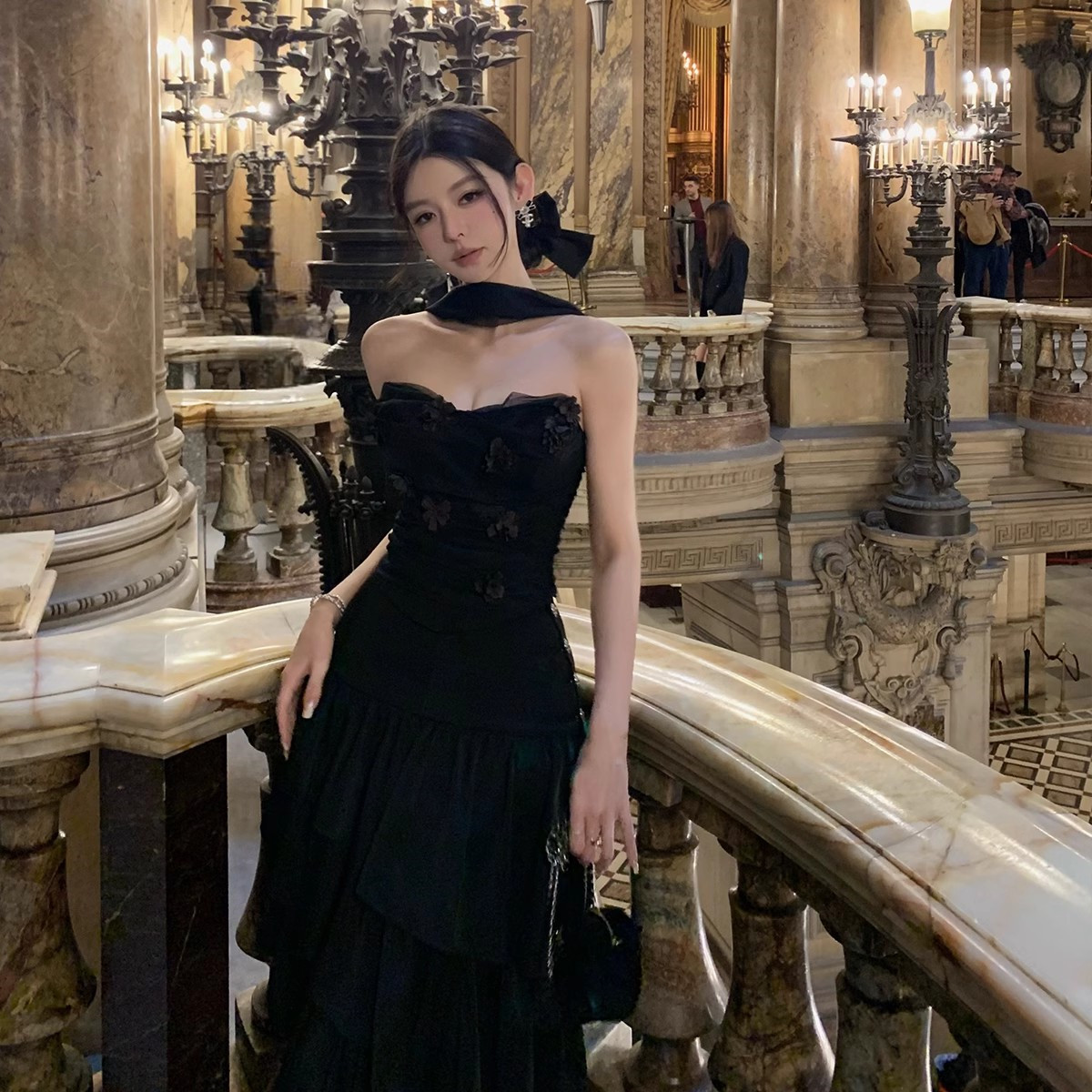 迪丽热巴同款黑色丝绒吊带背心女设计感小众外穿内搭性感裹胸上衣