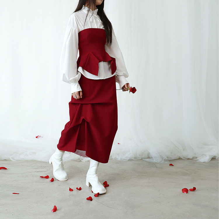 Domremy十五世宫廷小众设计感上衣新年年会酒红色系带仙女抹胸女