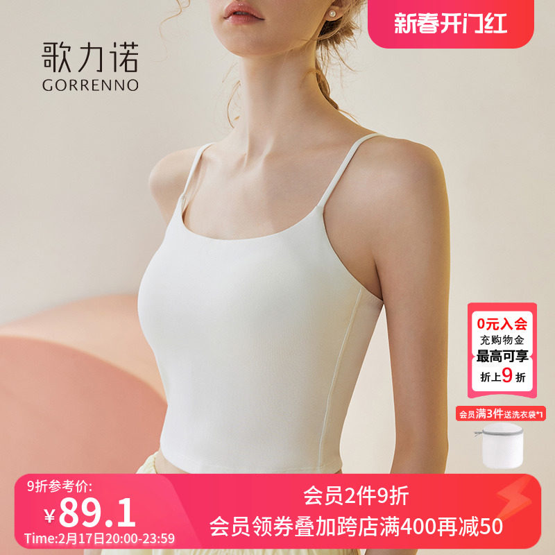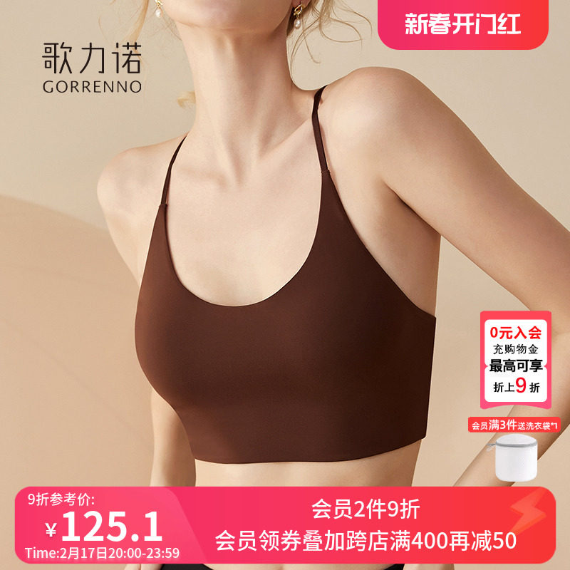 歌力诺运动美背心瑜伽抹胸内衣女吊带上衣挂脖式胸垫一体防震文胸