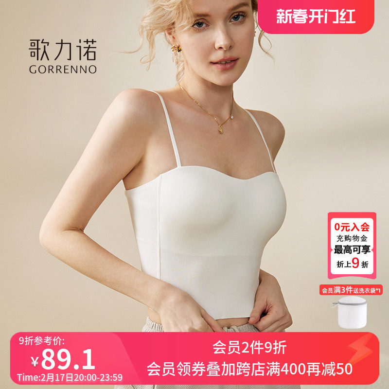 歌力诺抹胸内衣女美背心式裹胸吊带内搭带胸垫蕾丝上衣防走光文胸