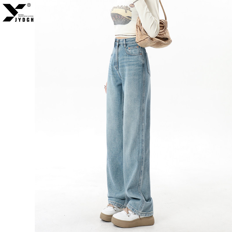娅丽达加绒阔腿裤显瘦直筒牛仔裤女2023冬装小个子宽松垂感裤子